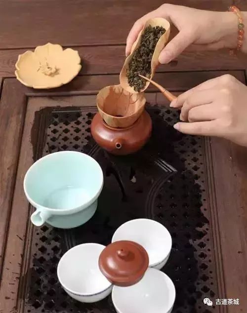 马龙入宫就是把茶叶放到器具的过程,表演可以适当加入花式,更具有茶韵。