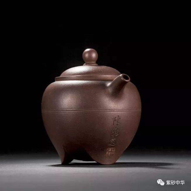 清康熙 陈鸣远制紫砂三足圆壶
