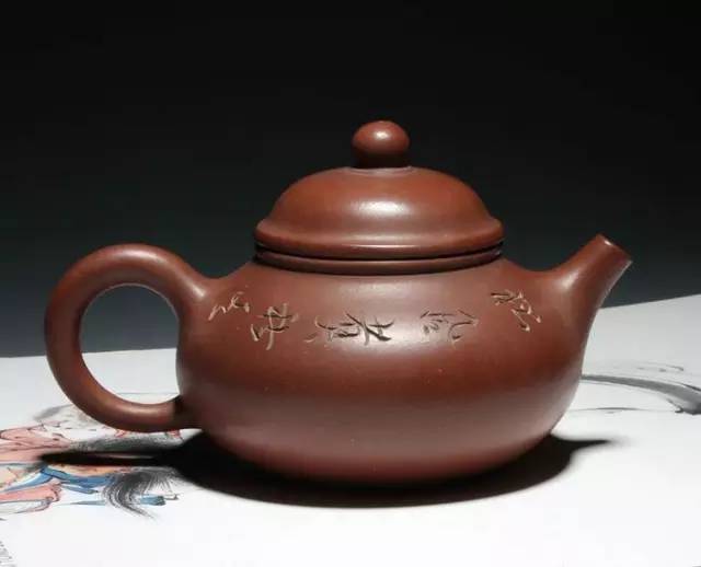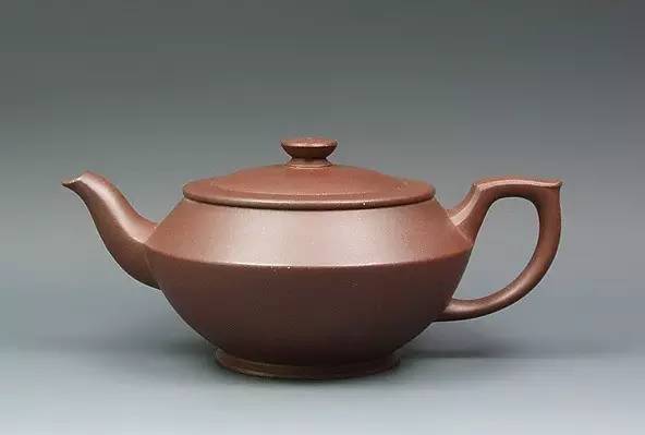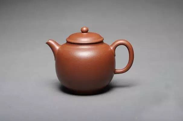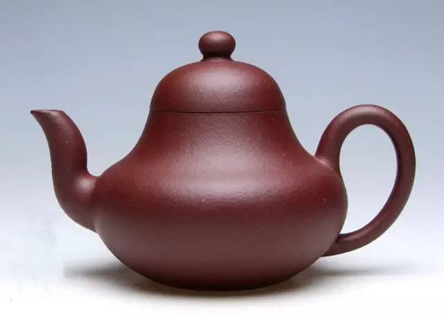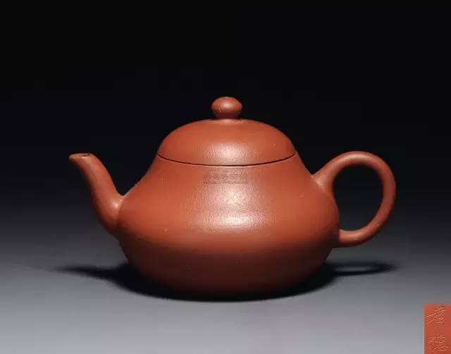 呈铁栗色,表面细润,是以优质紫砂泥制作。壶身呈莲子式,平肩高颈,压盖微穹,三弯嘴粗大,把环而方,扁珠状钮,为典型清中期手工制作特征。加底向内包卷,大平底,做工精细,形制敦实古朴。