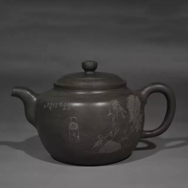 容量: 180cc ,原矿底槽青, 也有不带刻绘的。 底糟青名泥,产于江苏宜兴黄龙山系,紫泥原矿大致可分:头糟青、二糟青、底糟青等三类,本名泥产于紫泥最底层,质量之佳,为历代陶人推崇之首,亦为数百年来经典名器,及已故顾景舟大师最锺爱之名泥;此泥矿名称,因宜兴产地方言沿用已久,为恐溷淆,故用其音直译文字,以“底糟青”名之。