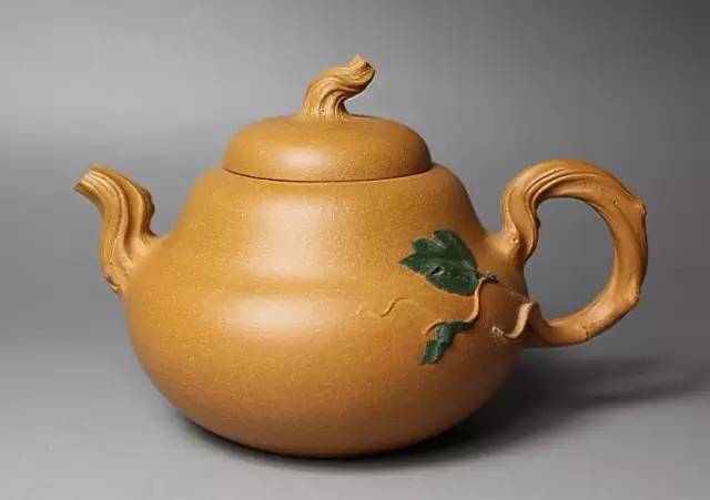 柿圆壶以柿子为型,表现了制壶者对成熟之秋的感怀,也表现了制壶者对柿子以硕大红润之果实来报答自然的赞美。