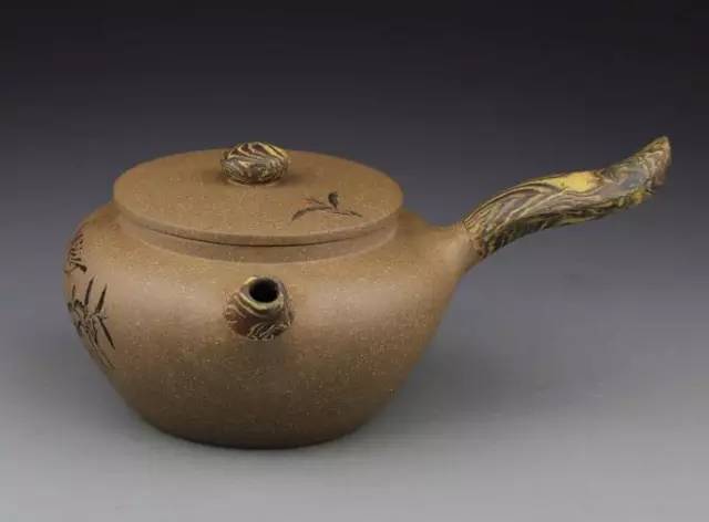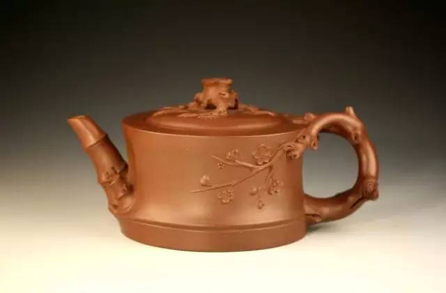 借鉴松、竹、梅题材来表达个人的感情和思想,圆形壶身似竹筒。此壶壶形、色、工各方面均独树一帜。其形注重意,其色重真,其工细兼精,造形艺术突出。