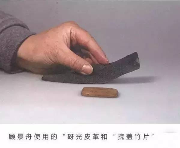 皮毛布:紫砂器皿表面抛光工具,通常采用细软、光洁的软猪皮制作而成,主要用以加工坯件的转折部位及明针触及不到的地方。