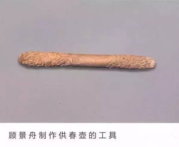 顶柱:支撑坯体的柱状工具,用于辅助印款的敲制,通常将制作完毕的紫砂坯体倒置其上,然后通过印锤敲击印章在底部形成印款。由木头或紫砂材质制成。