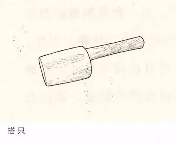 搭只:古称“椎”,即一种敲打泥条、泥片的器具。“用木重首作椎,椎唯练”,搭只从日用陶成型工具演化而来,呈带柄半圆柱体状,搭面中间微凸、四周略低、光洁细腻。通常由硬木制成。