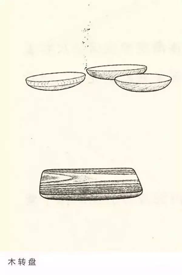 木转盘:古称“月阜”,“土稚不耐指,用木作月阜,其背虚缘,易运代土左右”。紫砂泥因质地软烂,不宜用指捏,要放在形如半月、背部边缘虚空的基座上操作。木转盘是紫砂器全手工成型的基础工具,要求中间略高于四周、均匀光滑,在打身筒、清盖板、勒大只时,转盘方面比辘轳有明显的优势,一般每人要备大小尺寸两只以上的转盘。木转盘能使制作者拍打壶身时,通过自然惯性旋转使壶身圆正,并在校验坯体的线面完整度上发挥较大的作用。现多与辘轳配合使用。