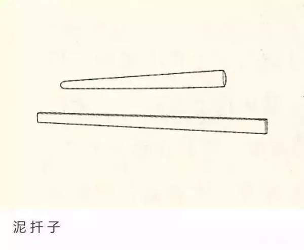 泥扦子:从柄到首逐渐变窄变薄的尺状工具,用于抹平拍打后的泥条或起放泥片,通常由竹片或硬木制成。