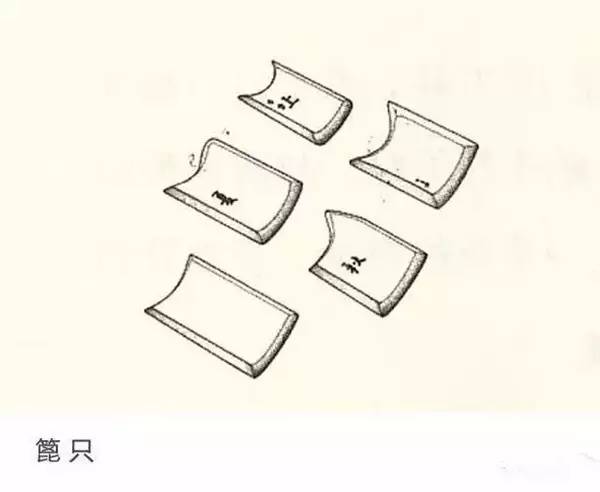 蓖只:《宜兴瓷壶记》载:“用竹木如贝,窍其中纳柄,凡转而藏暗者籍是。”用于紫砂壶身坯体轮廓的修整,由自然弧度的竹片制成,常见的有肩蓖只、腹蓖只、盖蓖只等。