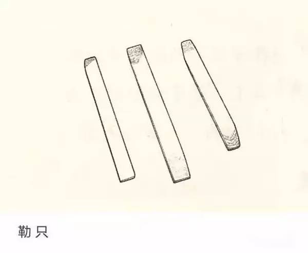 勒只:一种修整颈、底、足等与壶身交接转折处的长条状工具,两端根据紫砂造型的需要呈现一定的线条形变换。