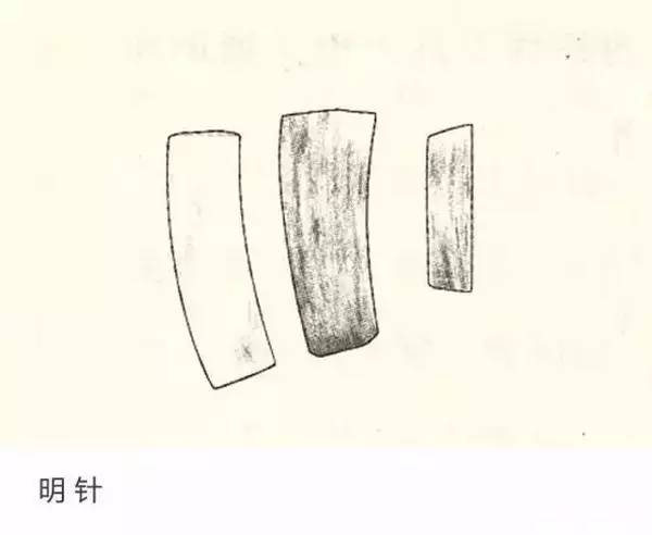 明针:古称“角”,为牛角制成的薄片,其形“阔寸,长倍五,或圭或笏,具前薄后劲,可以服我屈伸,为轻重用。用于紫砂表面精加工,前粗后细,通过在成型的生坯表面进行刮压,使器物表面光滑规整。根据用途的不同,分为身筒明针、嘴鋬明针、盖头明针等。