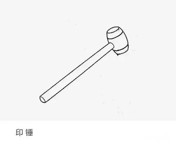 印锤:锤状工具,用于敲制印款,常用木头或金属等材质制成。