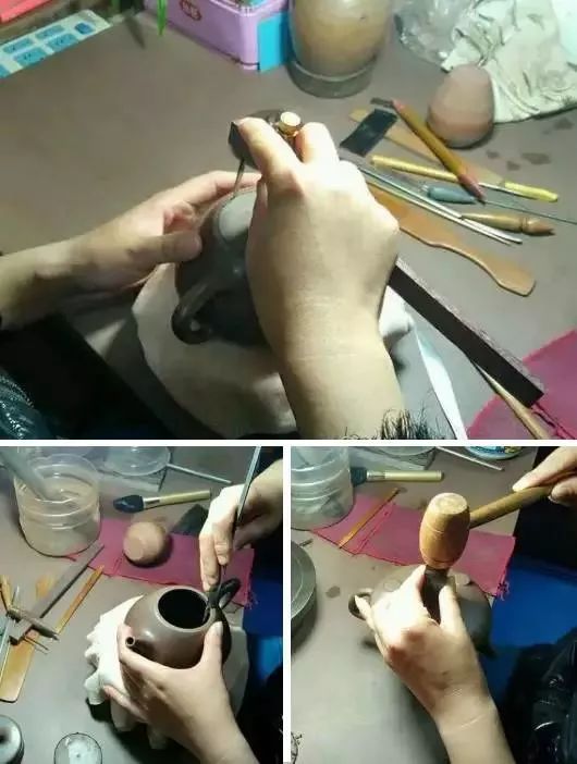 这样的紫砂壶只有实用价值,没有收藏价值。这类壶的制作过程一般如下所示。