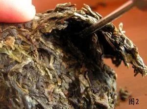 3.向上用力,把茶饼撬开剥落。(如图2)