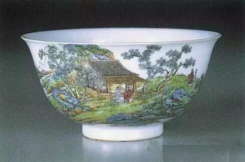 珐琅彩山水人物白地茶碗