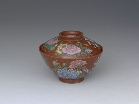 五彩四季花盖碗
