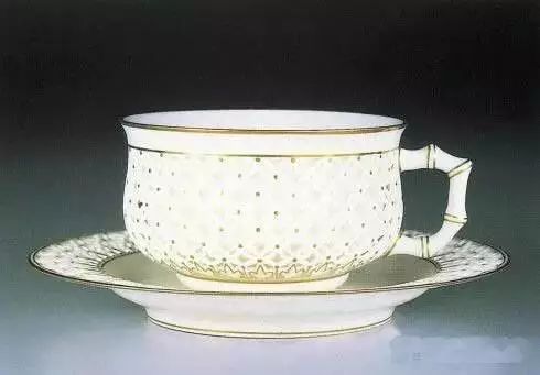 白瓷描金鏤空帶托茶杯