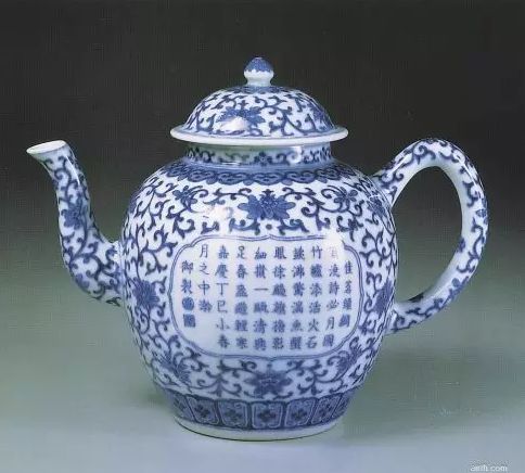 青花开花御制诗文茶壶