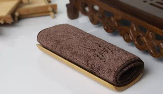 茶巾又称为茶布,茶巾的主要功用是干壶,于酌茶之前将茶壶或茶海底部衔留的杂水擦干,亦可擦拭滴落桌面之茶水。