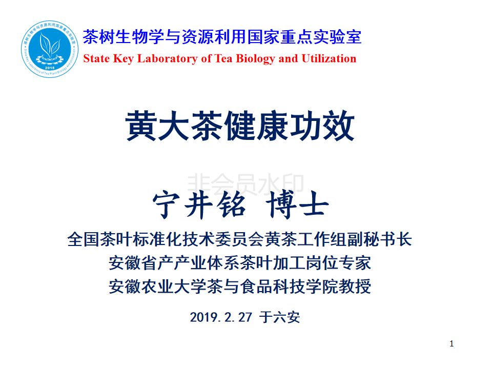 黄大茶健康功效 -- 安徽农业大学宁井铭教授