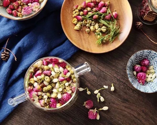 桂花:具有止咳化痰、养生润肺之功效,解除口干舌燥、胀气、肠胃不适。