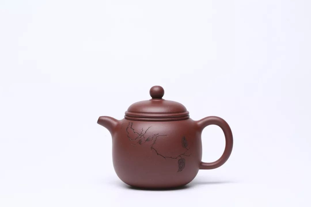 壶把成圆形,壶嘴成拱形,两者相互协调。壶盖上有圆球与壶身、壶盖相互衬托,比例大小适中,有一种舒心随意之感。