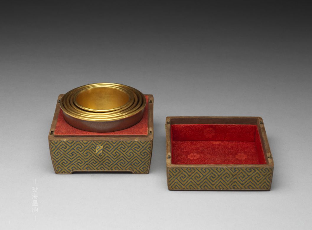 从紫金釉套杯配有专属之木匣、锦袱,或可推测其为当时受到皇帝珍赏之品茗茶器。