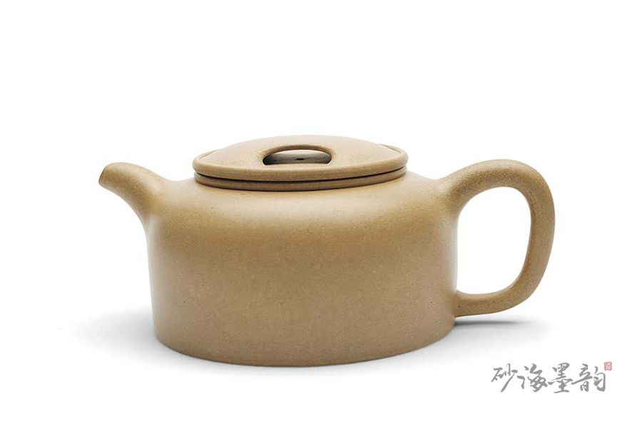 壶口与盖各成一环上下密合无缝,壶把卷起活似随时欲扬起的牛尾般生动。整体洋溢着幽雅的书卷气息。