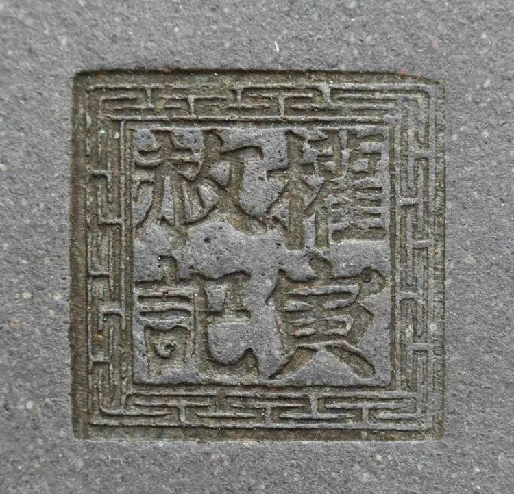 邵赦大先制壶,后经营,所用印款为“权寅赦记”四字楷书方正回纹边框印,自制壶盖有邵赦大作者印,订制壶只在壶底有“权寅赦记”章款。