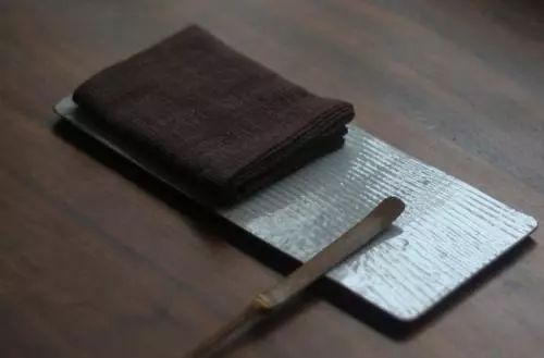 茶巾:又称为“茶布”,多用棉、麻制成,可以用于擦拭干茶壶,也可用于擦拭滴落在桌面的茶水。