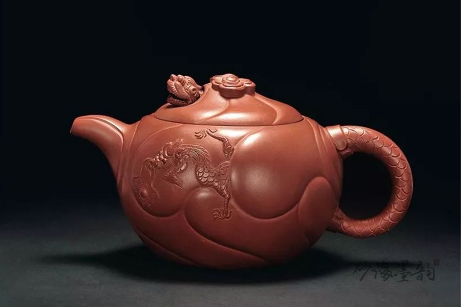 黄玉麟选泥讲究,作品莹洁圆润,灵妙天然。善制觚棱壶、掇球、供春、鱼化龙等诸式,擅长铺砂技艺,精巧而不失古意。又善制假山,层峦迭嶂。