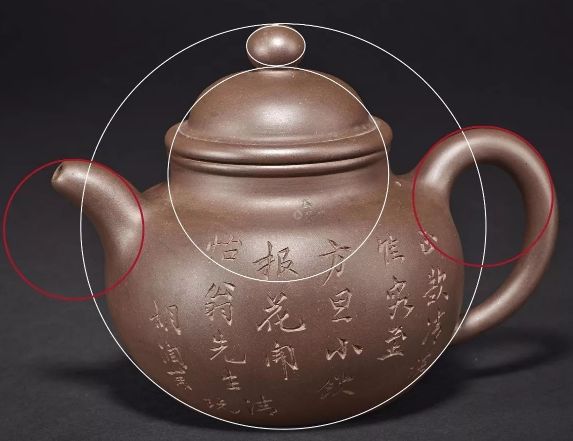 指紫砂壶整体的协调性,可以看壶嘴、口盖和壶把是否在一直线上,三者的搭配是否和谐。