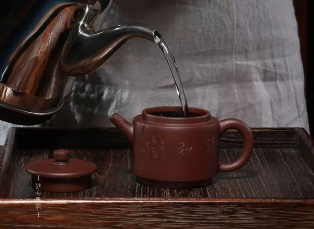 用40~50℃的温水沿壶壁快速浇淋身里外,至壶装满温水,盖子也需要淋一淋。让壶充分预热后,再用此壶泡茶。