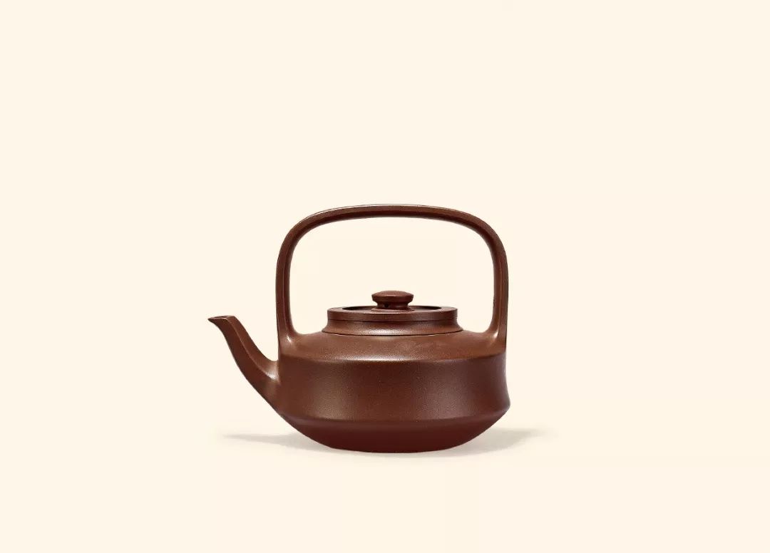 与传统井栏壶相比,壶身变矮,壶盖设计也更见简洁,壶柄去掉了飞,使之整体更沉稳、更明快,壶的肩部由传统的直角改为抹角,使壶身与流、盖、柄搭配更自然协调,有一种柔和之美。
