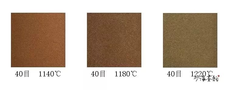 熟泥可塑性较好,成型时略酥,制作时带有泥沙性,烧成温度范围一般。一般烧成1140~1170℃左右。烧成后呈红色微透黄,经一定的高温呈暗红色。胎质细密光润,呈梨皮状的表面黄色颗粒隐现,色泽效果细腻而丰富。