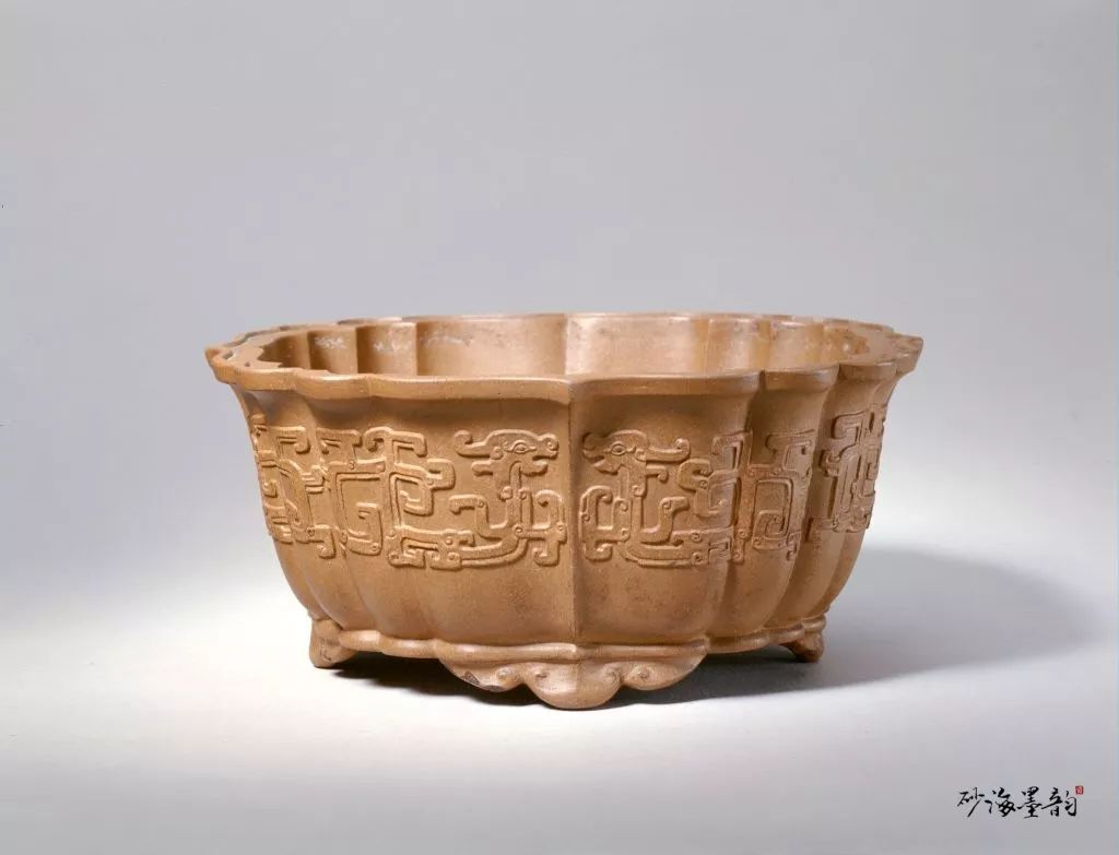 此花盆是宫中栽培兰花的常见盆式之一,由于要考虑其必须具备良好的透气性,所以砂泥的颗粒通常要比茗壶的砂泥粗糙许多,也因此而具有素朴自然的美感。