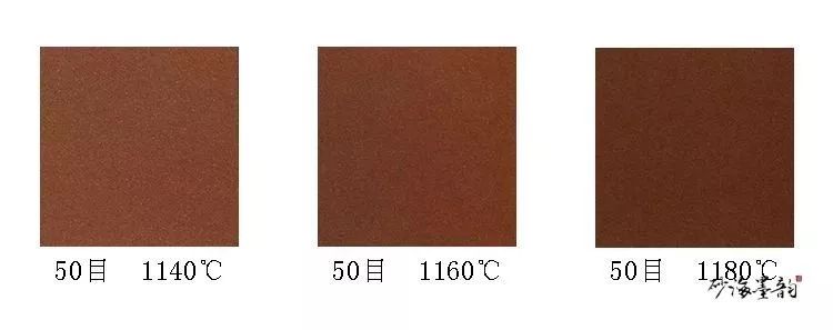 烧成温度范围一般。一般烧成1130~1150℃左右。烧成后呈浅暗红色调,经一定的高温呈暗红色调,外观色泽比较单一。