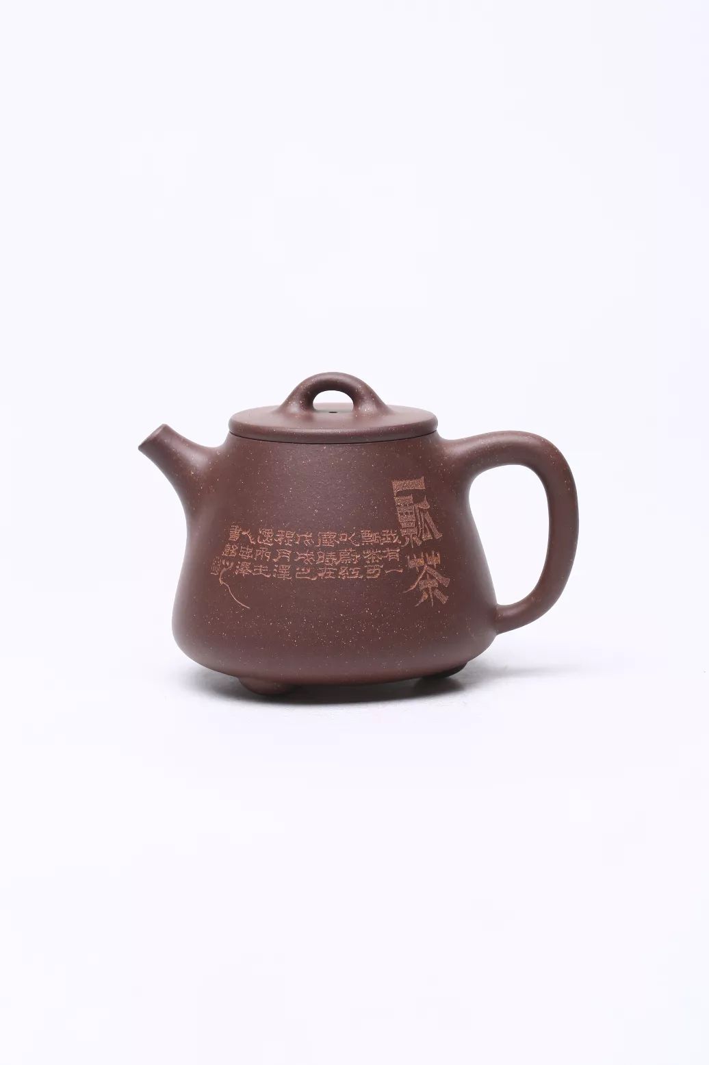 烧成后呈紫红色调,胎质呈现细梨皮状,壶身有金砂显现,砂质细密油润,色泽纯正、沉稳,在高温烧成后,色泽略泛灰,金砂明显,极为惊艳。