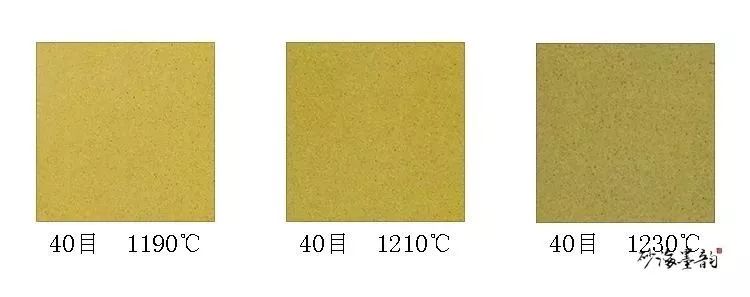 烧成温度范围一般。一般烧成1210~1230℃左右,收缩率5%左右。烧成后呈黄色,胎质颗粒质感较强,呈色比较纯正,但表面略显干涩。