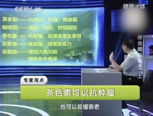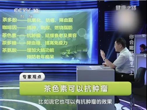 茶作为世界三大健康饮料之一,其丰富的养生保健功能一直为众人所推崇。央视CCTV10的《健康之路》就曾制作了一期主题为【你会喝茶吗】的节目,请来了专家教授详细讲解茶叶各成分的健康功效。