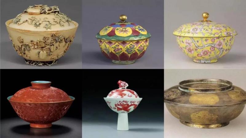 盖碗由碗身、碗托、碗盖三部分组成,也叫“三才碗”,明清时期非常流行。所谓“三才”,指的是天、地、人:碗盖在上面,叫做“天”;碗托在下面,叫做“地”;碗身居于中间,叫做“人”。从这样一副茶具中,人们可以体味出古代哲人“天盖之,地载之,人育之”的思想。