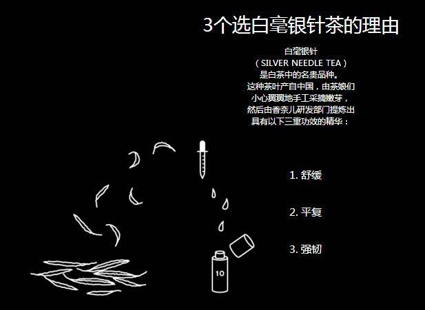 香奈儿10号乳液作为针对敏感肌的完美之作,选择白毫银针作为产品的核心配方成分,就是看中了白毫银针的抗氧化能力!