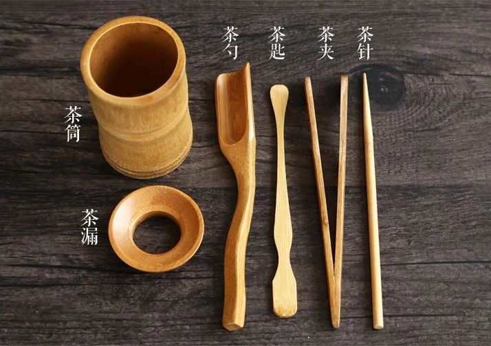 茶人亦是感激,遂把茶桌上必备的六件茶具雅称为茶道六君子。它们分别是茶筒、茶漏、茶针、茶夹、茶则、茶匙。