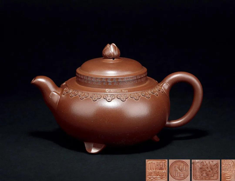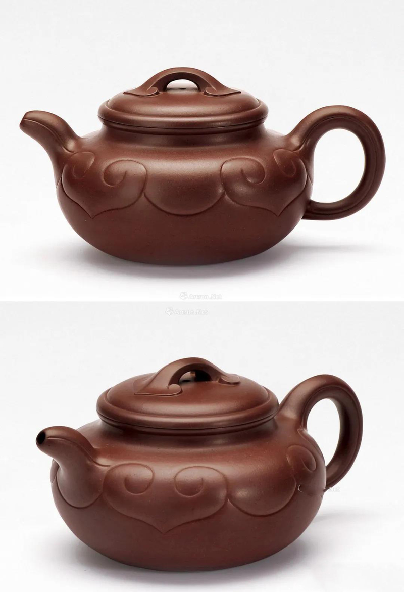 特点,壶身以四个丰满肥硕的如意云纹组成,云纹舒展有致,形似花朵,自然尔雅。朵云头不是一个,而是几个相连在一起,形成“一串云”,象征高升和如意,别具一格。