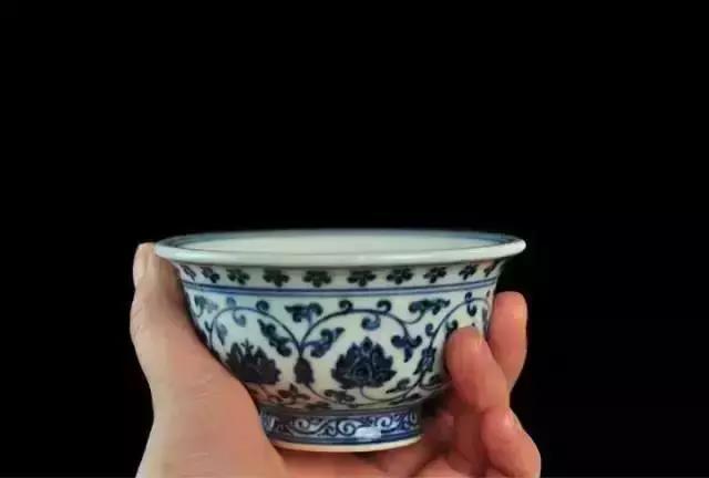 口沿外撇,腹部宽深丰圆,造型端正,多为皇宫用器,故名。明正德时烧制最为著名,有“正德碗”之称。图片上看不出来小,事实上它比类似形状的杯子要大多了。