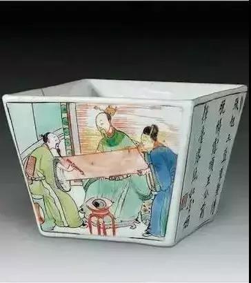 敞口,浅腹,卧足。杯上以斗彩绘画雌、雄鸡及雏鸡,间以山石、兰草、牡丹,故名鸡缸杯。明成化斗彩鸡缸杯曾名噪一时,清代各朝都有仿造,尤以康熙、雍正时所仿最佳,几可乱真。一只杯子好几亿哦!