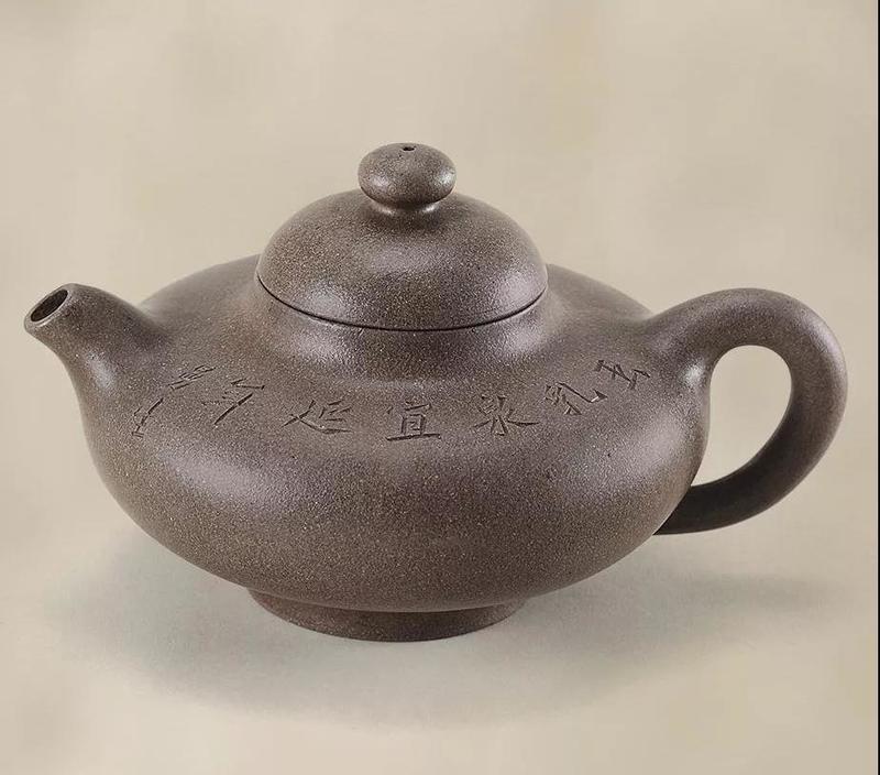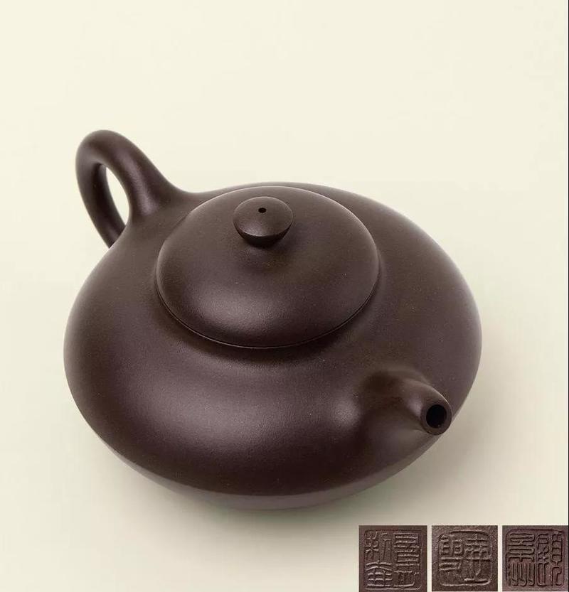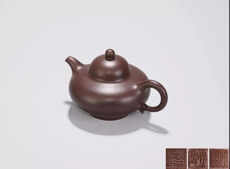 这款便是顾老所创制的华颖壶,此壶有掇球之形,作品把圆、盖圆、壶身圆等多圆垒叠在圆壶底上,分外精神,遥望犹如花苞初绽。