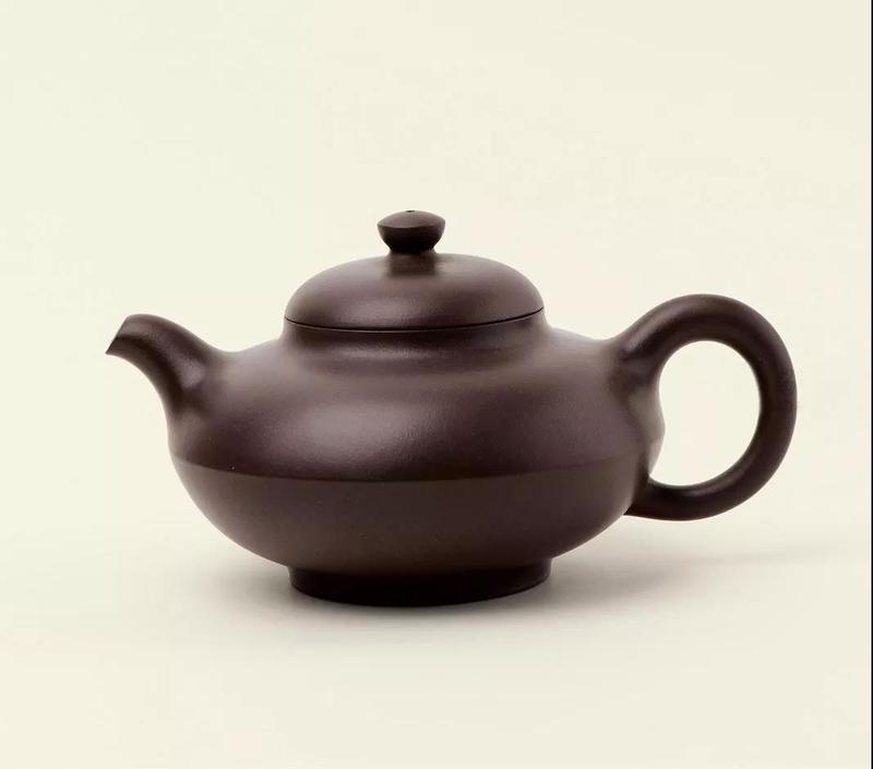 壶呈扁圆形,短曲流搭配环状柄,扁圆钮,圈足,其特征简洁、明快、素雅、精炼。整体以弧线组合而成。