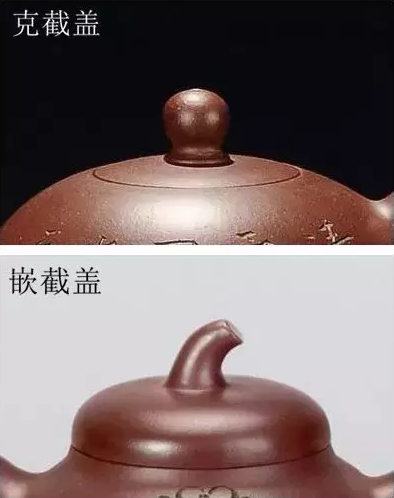 (3)截盖:这是紫砂壶特有的一种壶盖形式,以壶整体截取一段作壶盖而故名。其特点是简洁、流畅、明快、整体感强。制成后盖与口不仅大小合适,而且外轮廓线互相吻接,丝严合缝,故技术要求较高。有截盖、克截盖、嵌截盖之分。
