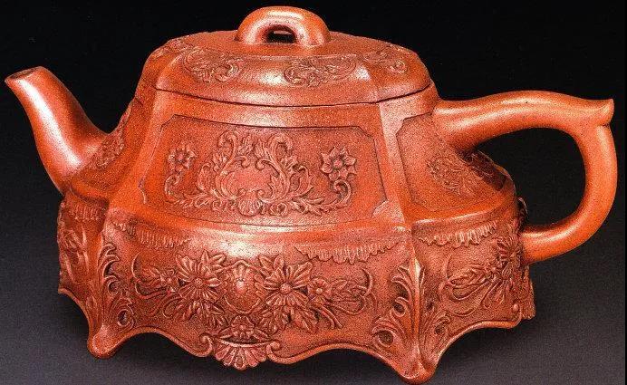 紫砂壶中的印花装饰使用得不是太多,只是在壶颈、壶肩、圈足、盖沿边等一些部位印上一些几何纹或回纹。