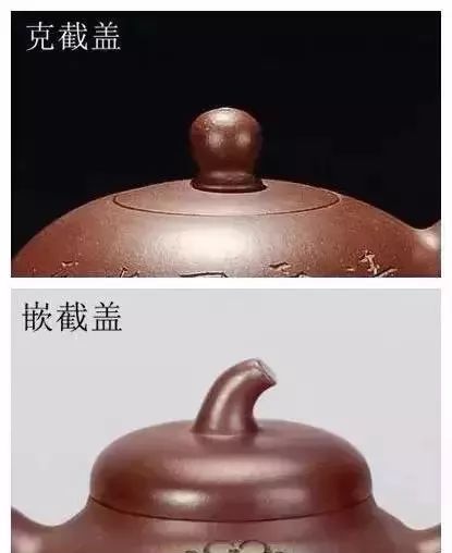 (3)截盖:这是紫砂壶特有的一种壶盖形式,以壶整体截取一段作壶盖而故名。